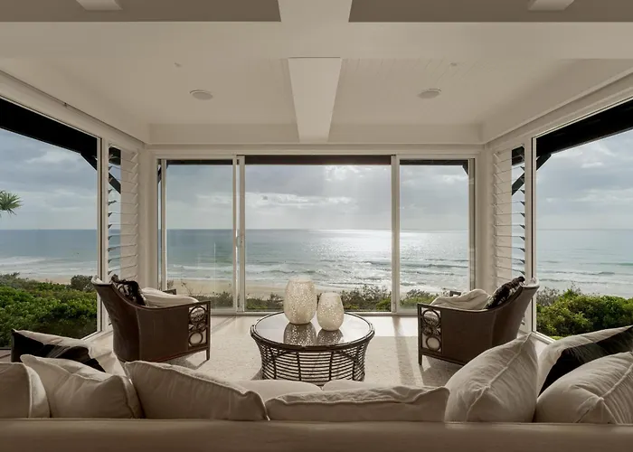Die Villa Oceanfront Retreat On Belmore Sunshine Beach liegt in einer 25 Gehminuten Entfernung vom Noosa-Nationalpark und verfügt über eine Terrasse mit Blick aufs Meer. Die Villa bietet einen Swimmingpool und liegt knapp 2 Kilometer von den Höllentoren entfernt.
